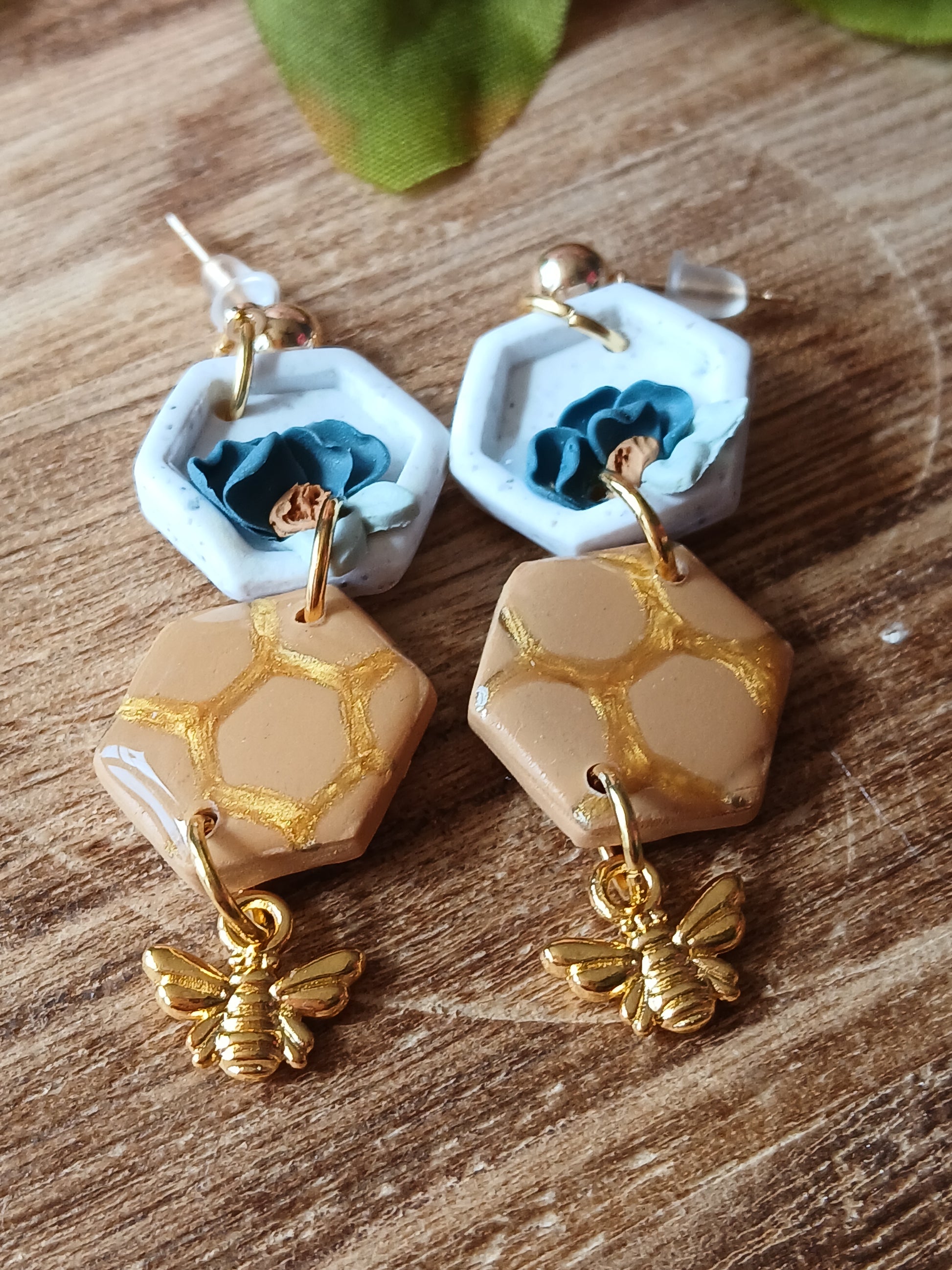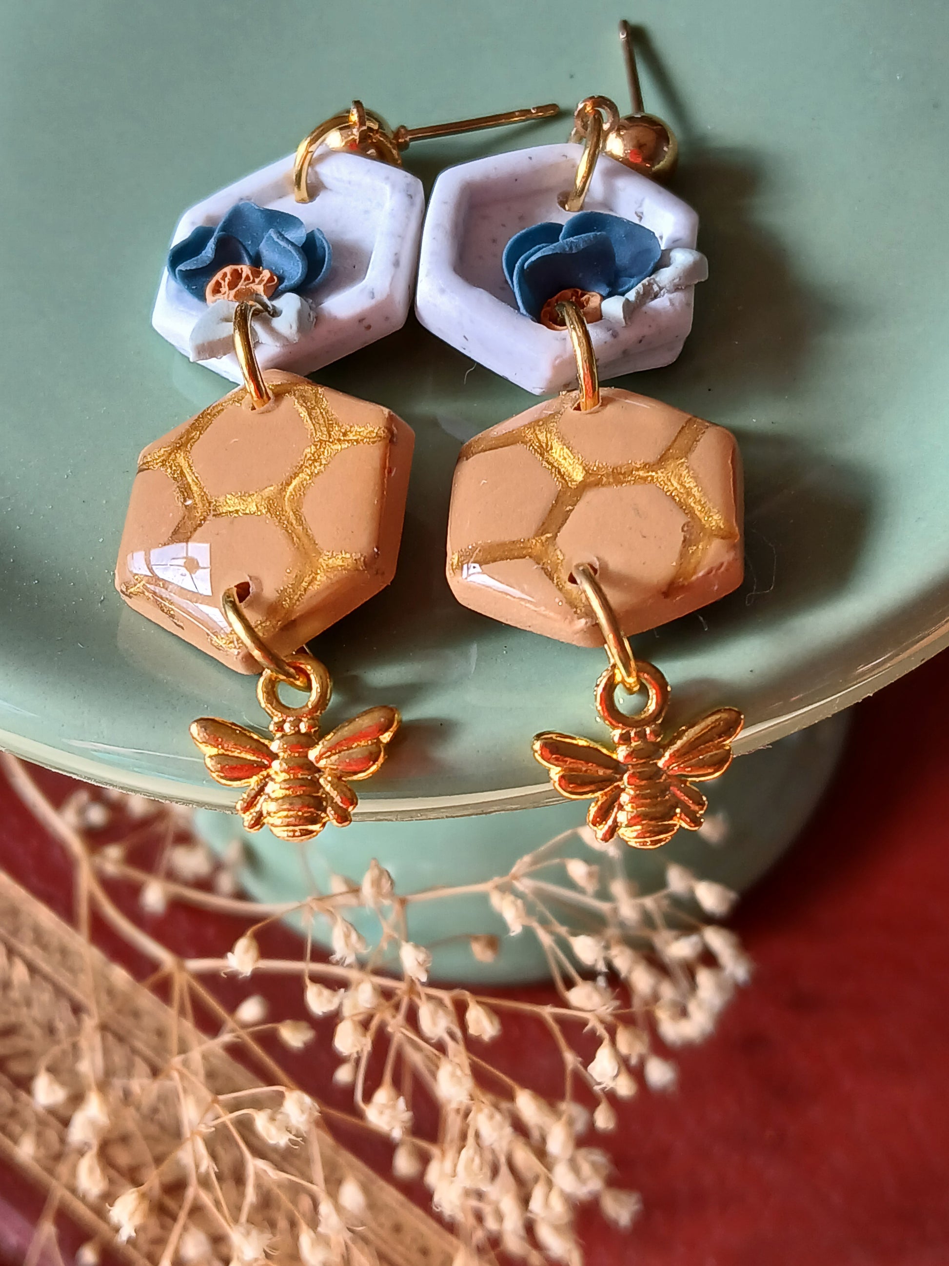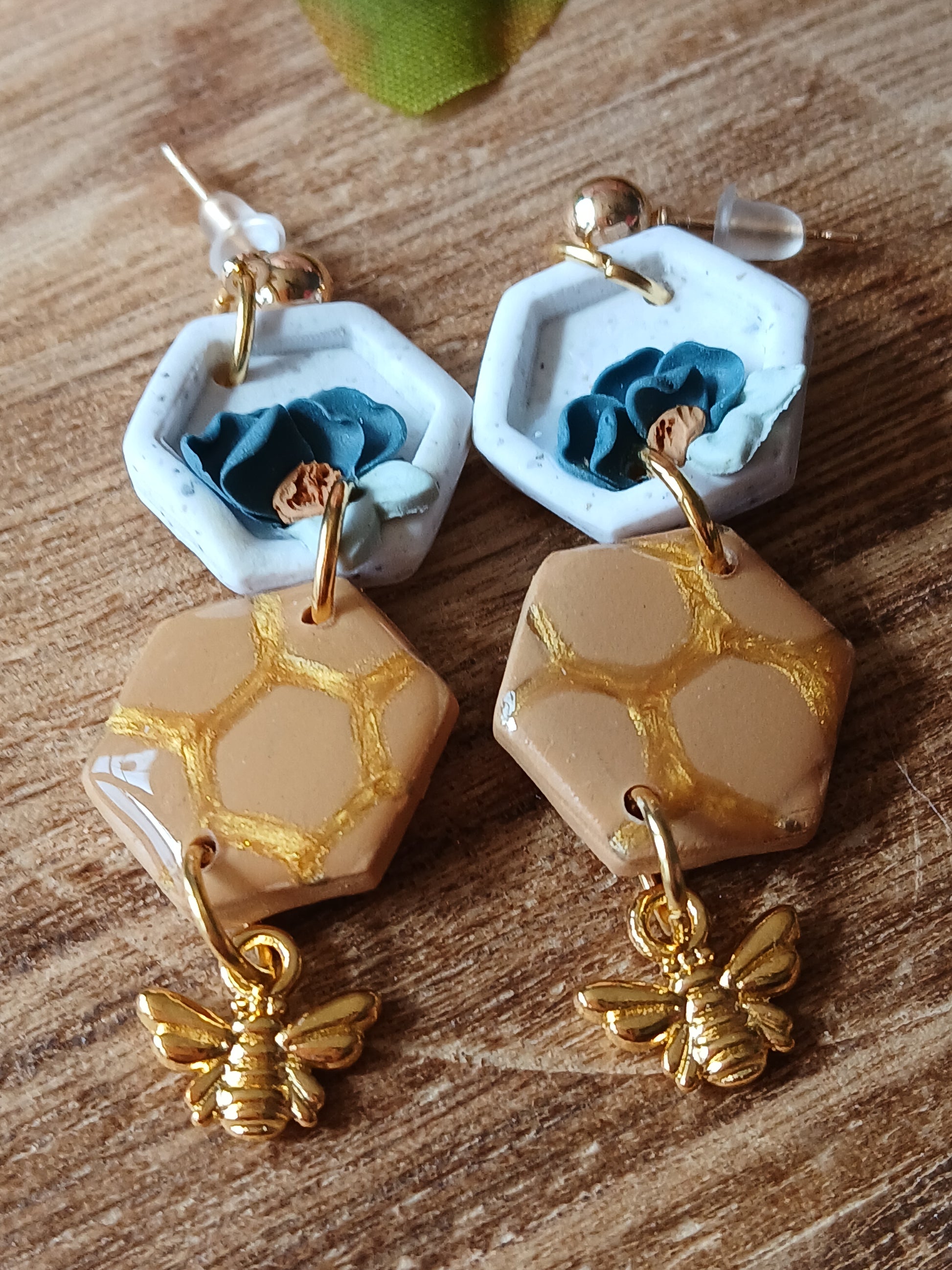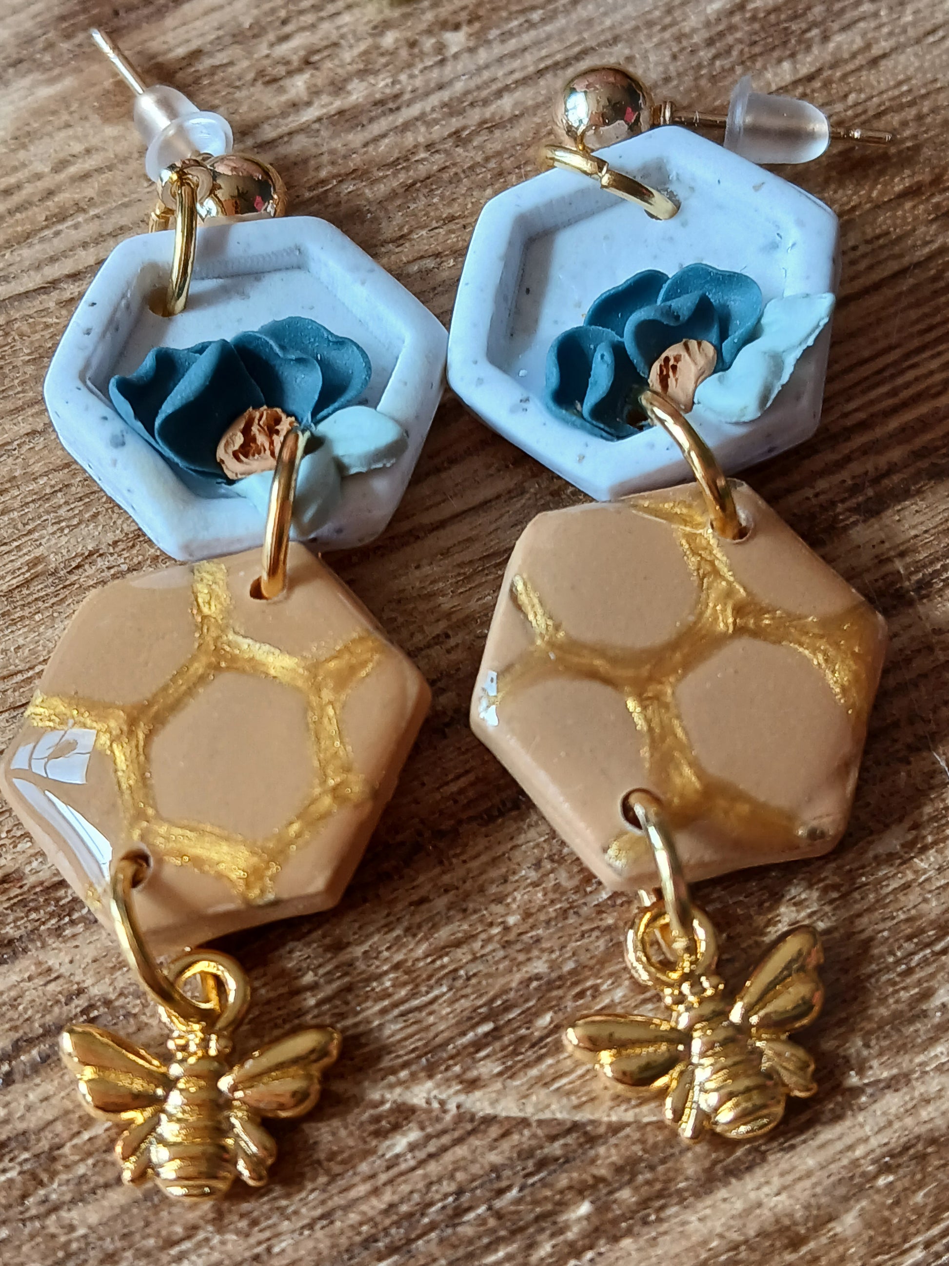 Indulge in the beauty of handmade art with our exquisite Queen Bee polymer clay creation. Adorned with intricate floral details and set in a charming beehive design, this piece exudes elegance and creativity. The subtle touch of gold adds a luxurious finish, making it a perfect addition to your collection. Elevate your style with the Queen Bee masterpiece today!